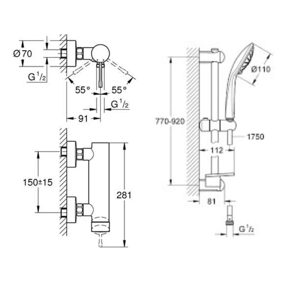 - GROHE QuickFix (support supérieur réglable pour s’adapter aux trous de fixation déjà existants)