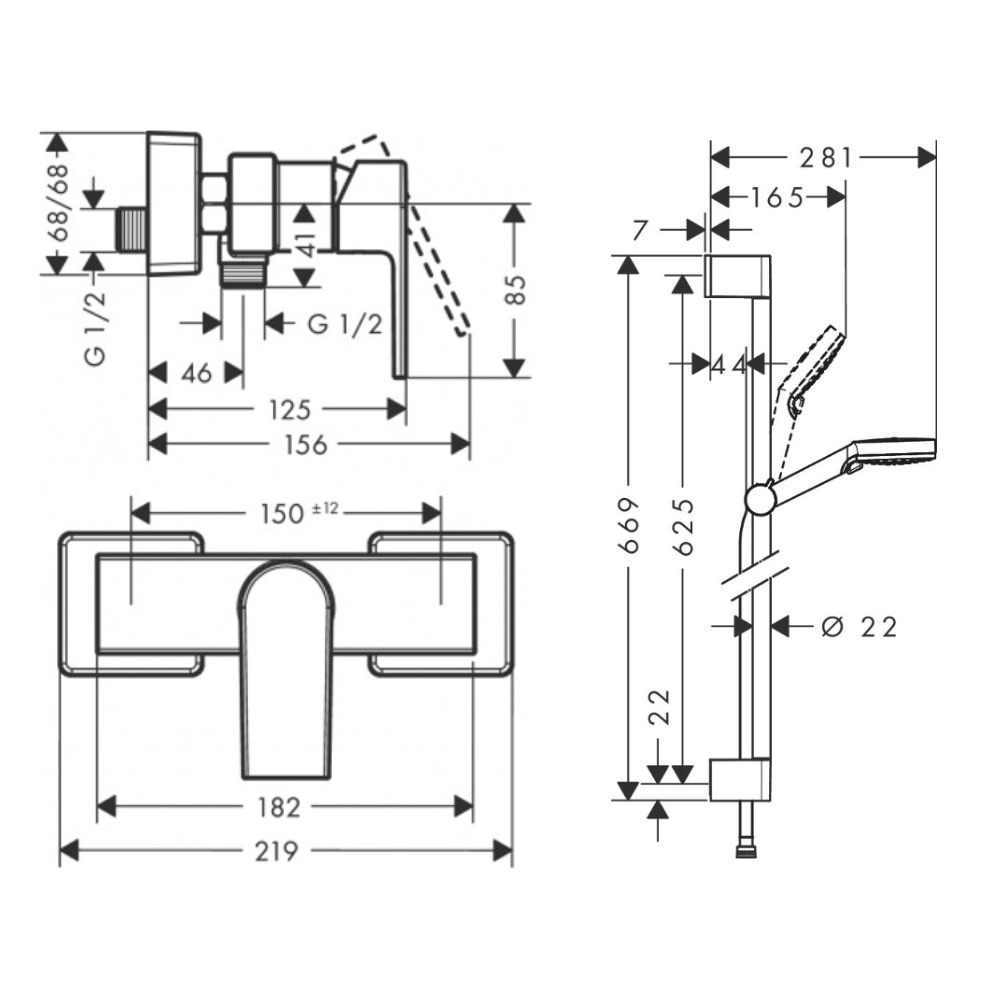Caractéristiques du Pack Mitigeur de douche HansGrohe Vernis Shape + Set de douche Crometta Vario 0,65m, blanc/chromé HansGrohe (71650000-Crometta) :