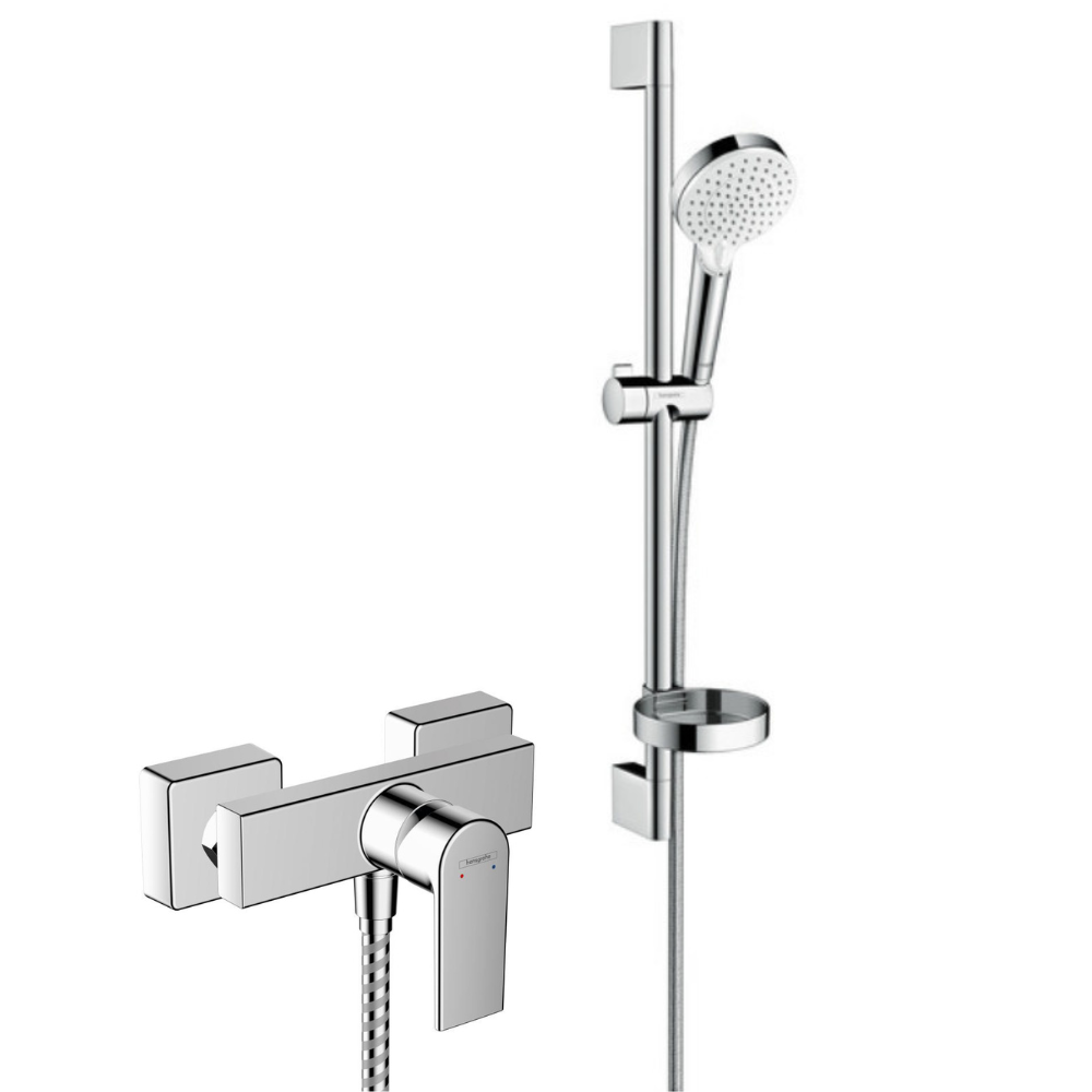 Hansgrohe Vernis Shape Pack Mitigeur de douche + Set de douche Crometta + douchette 2 jets, barre et porte-savon (71650000-Crometta2)