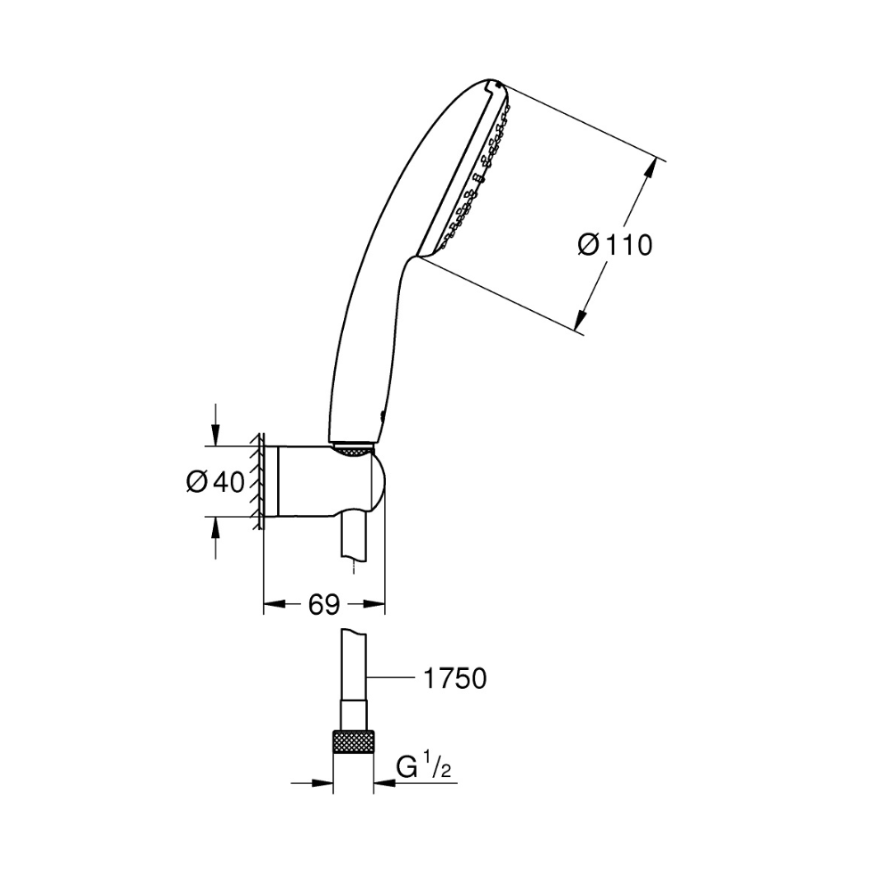 Caractéristiques du set douchette à main 1 jet avec support mural, chrome Grohe Vitalio Start 110 (G27944001) :
