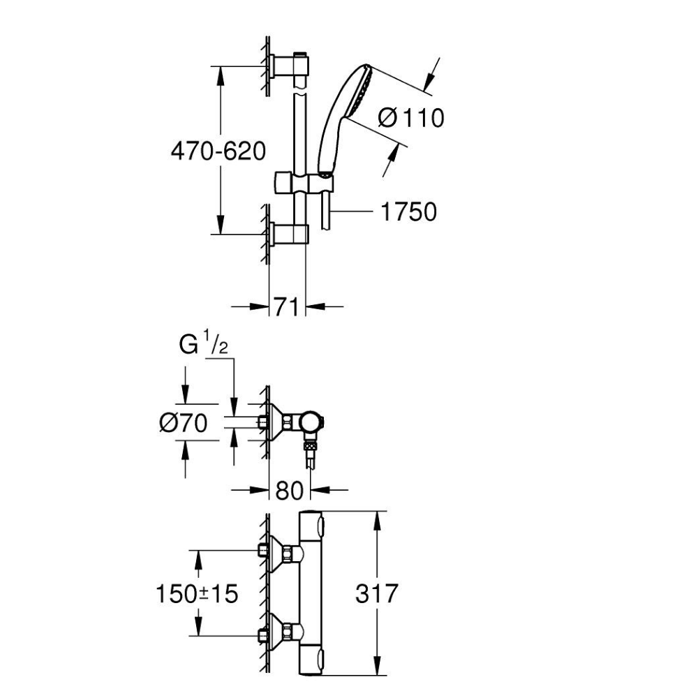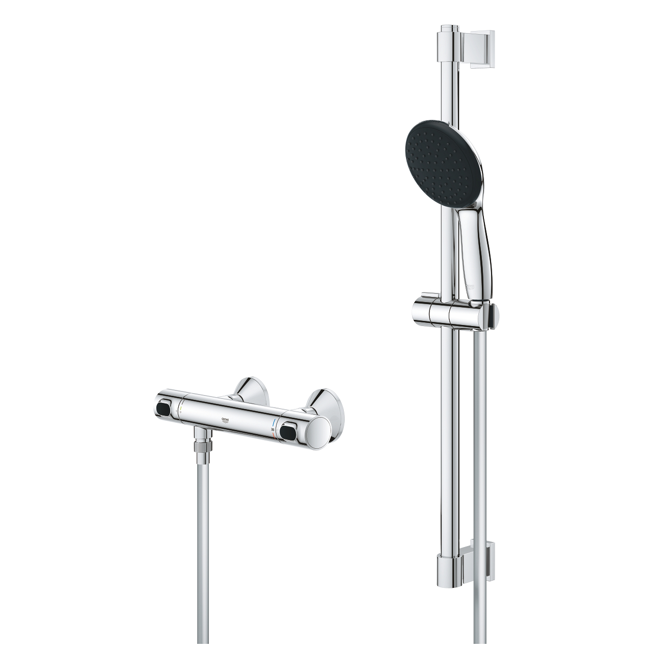 Caractéristiques du Set de douche avec mitigeur thermostatique + Douchette + Barre 60 cm, chrome Grohe Precision Flow (G34800001) :