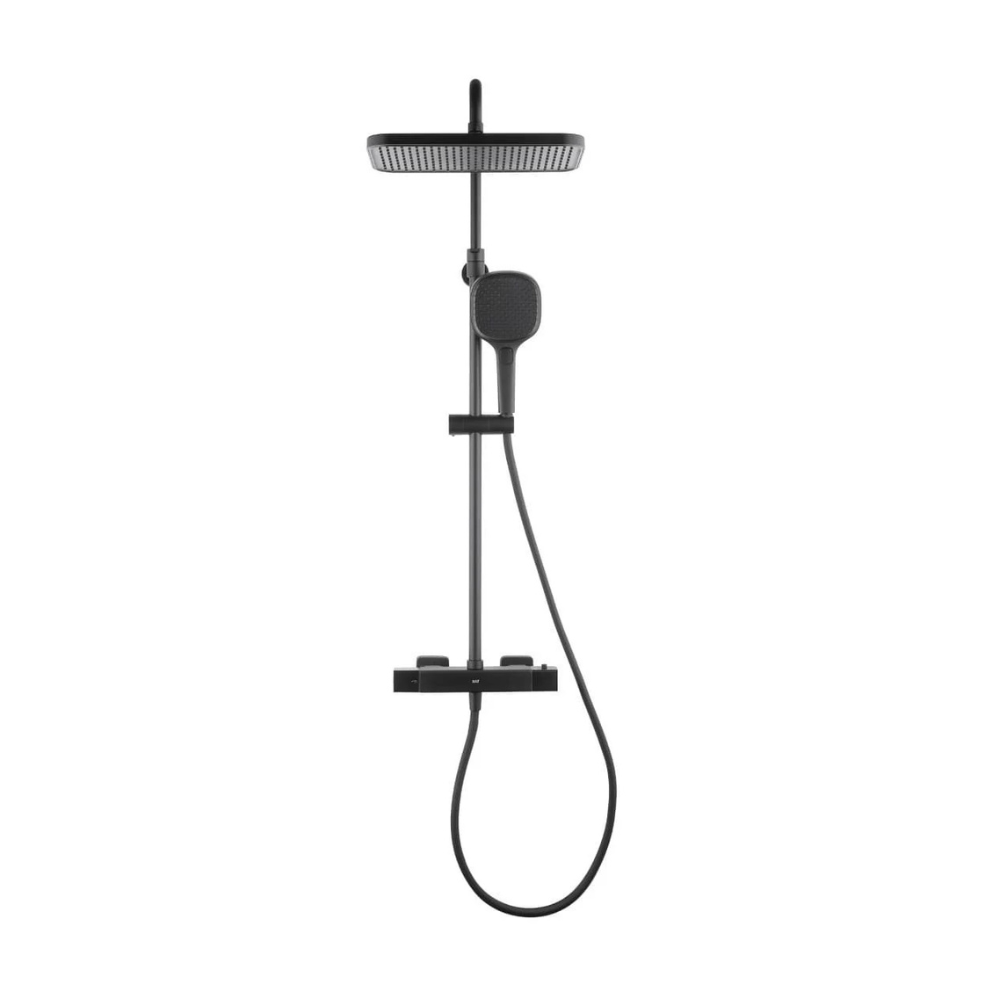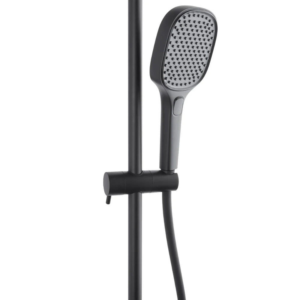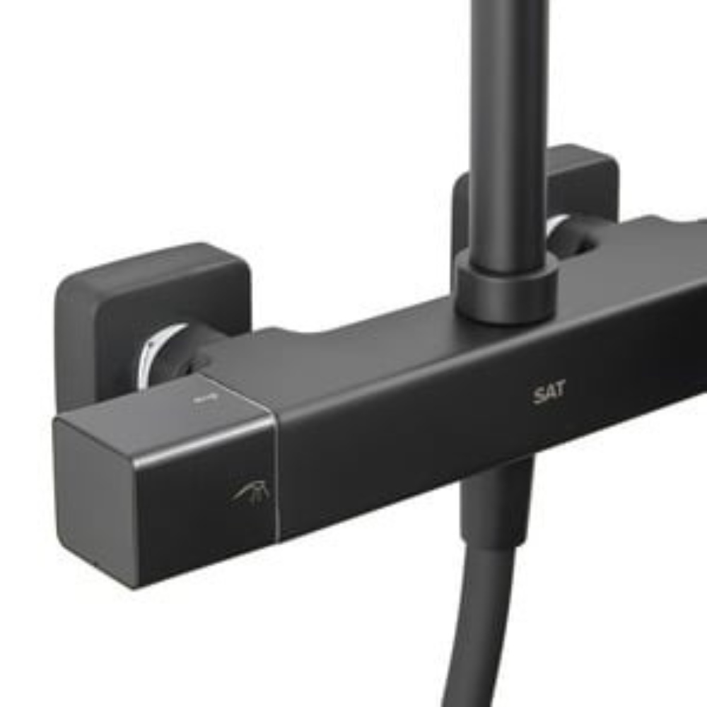 Caractéristiques du set de douche avec mitigeur thermostatique + douche de tête + douchette 3 jets, Swiss Aqua Technologies, noir mat (SATSSTZC) :