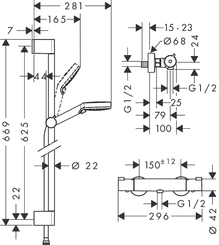 Caractéristiques du Set de douche Hansgrohe Combi Crometta Vario 0,65m/Ecostat 1001 CL (27812400) :