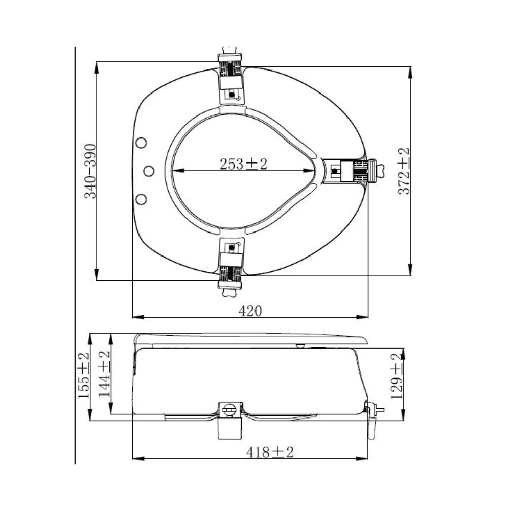 - Conception universelle avec fixation flexible et réglable pour s'adapter à la plupart des toilettes.