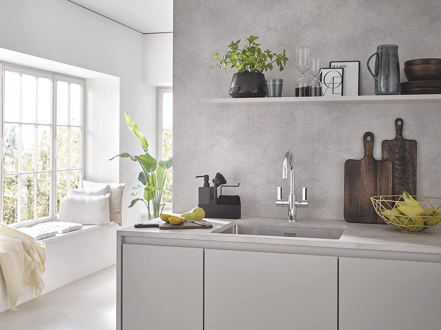 Avec ses lignes épurées et son grand espace intérieur, l'évier en acier inoxydable GROHE K700 est la solution parfaite pour les cuisines minimalistes modernes.