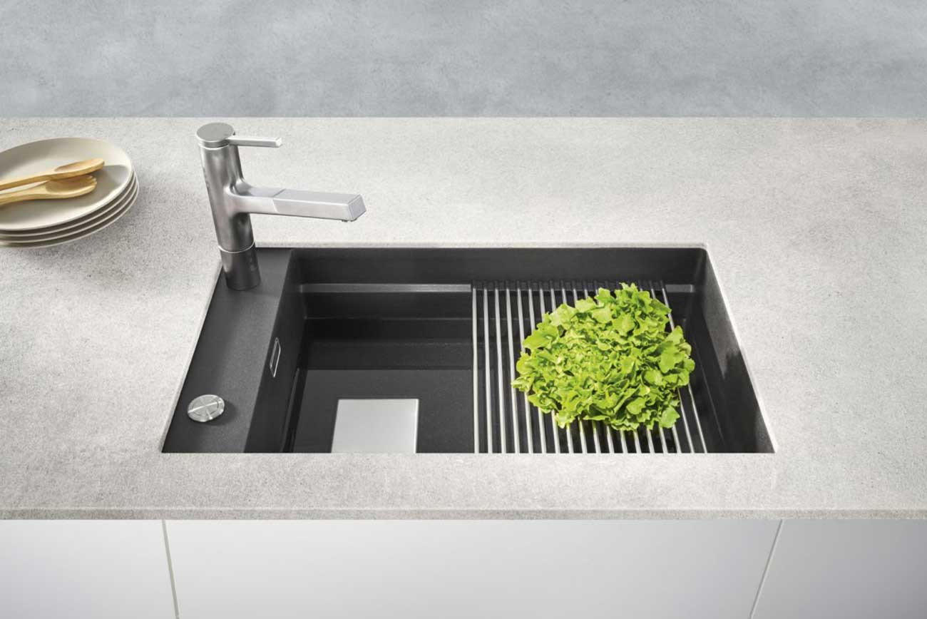 Le Fragranit+ est fabriqué à partir du Quartz, soit l'un des matériaux les plus résistants. La surface de votre évier résistera à des températures allant jusqu'à 280°C. Il est aussi résistant aux impacts et aux chocs thermiques, même les couteaux ne pourront abîmer sa surface.