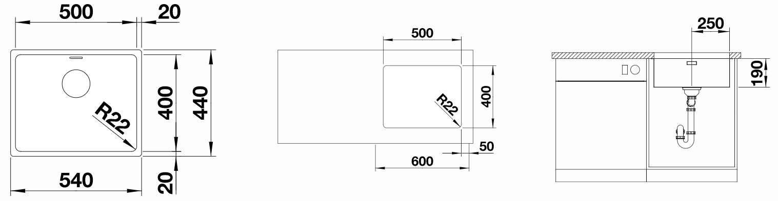 - Evier : 540 x 440 mm