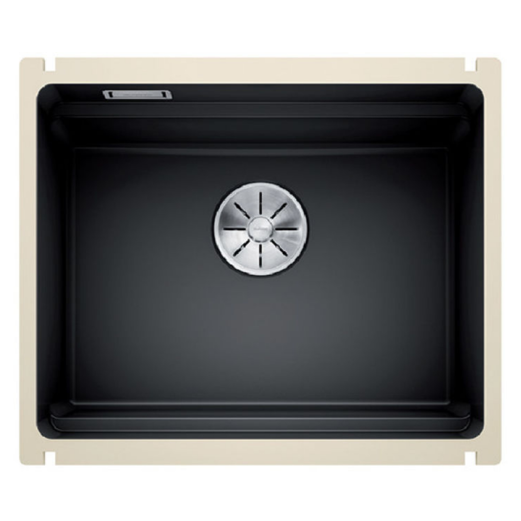 Blanco Evier ETAGON-U 500-U Céramique PuraPlus avec grande cuve à étages 54x45.6 + 2 rails + siphon inclus, Noir (525155)