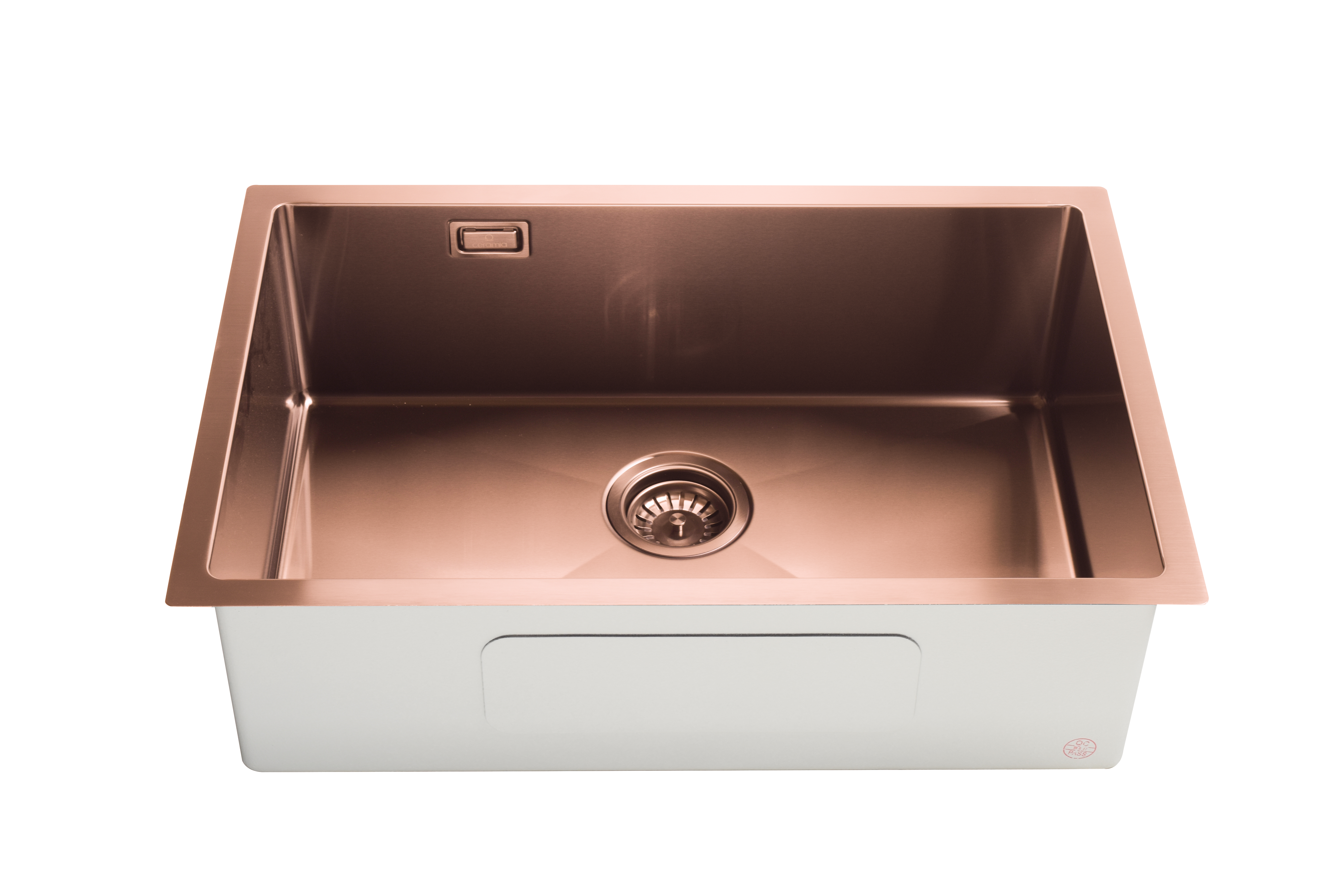 Ceramia Timeless Évier de cuisine sous plan inox 304, 1 bac, 68x45x21 cm, Cuivre brossé PVD