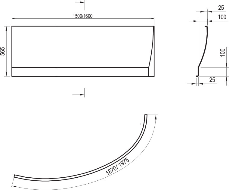 Caractéristiques du Tablier en acrylique blanc pour baignoire, orientation droite, 160cm, Ravak Avocado (CZI1000A00) :