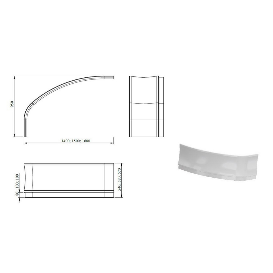 Caractéristiques du Tablier de baignoire 160cm en acrylique, Blanc, Laguna Luiza (LUP1600P) :