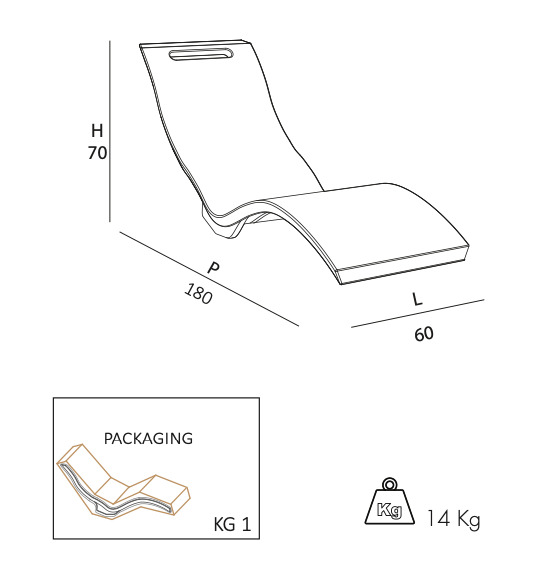 - La possibilité de varier son angle d’inclinaison, permet de bénéficier de relaxation totale, ce qui en fait un objet de design unique et exclusif. Fonctionnalité et stabilité sont garanties par l’utilisation du polyéthylène HD, produit avec rotomoulage, qui la rendent adapté pour tout type d’ambiance, soit intérieur que extérieur, pour usage privé et professionnel.