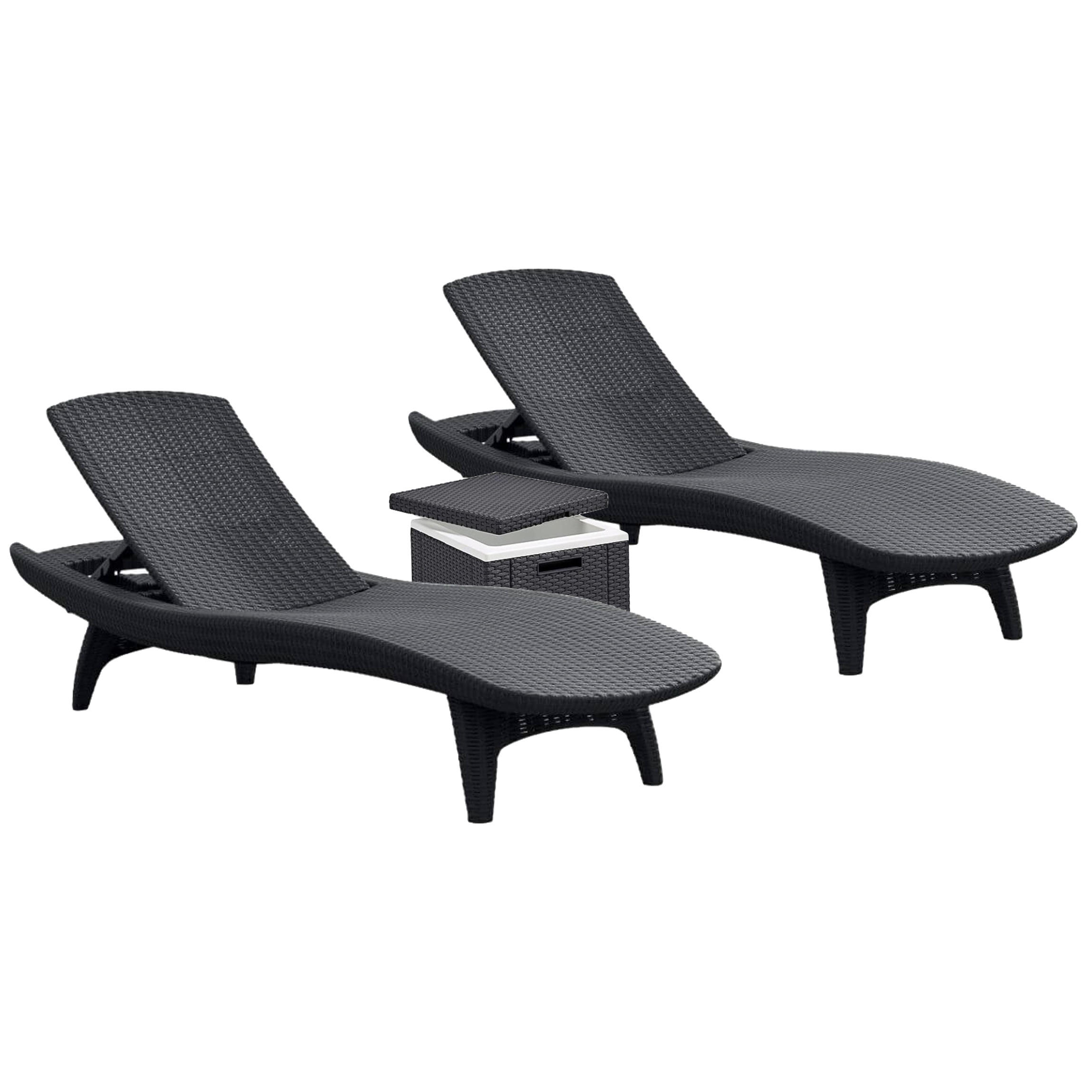 Allibert by Keter Pacific lot de 2 chaises Longues, 4 positions, 197 x 75 x 41 cm + ice cube Glacière, Graphite (230674-DUOICE)