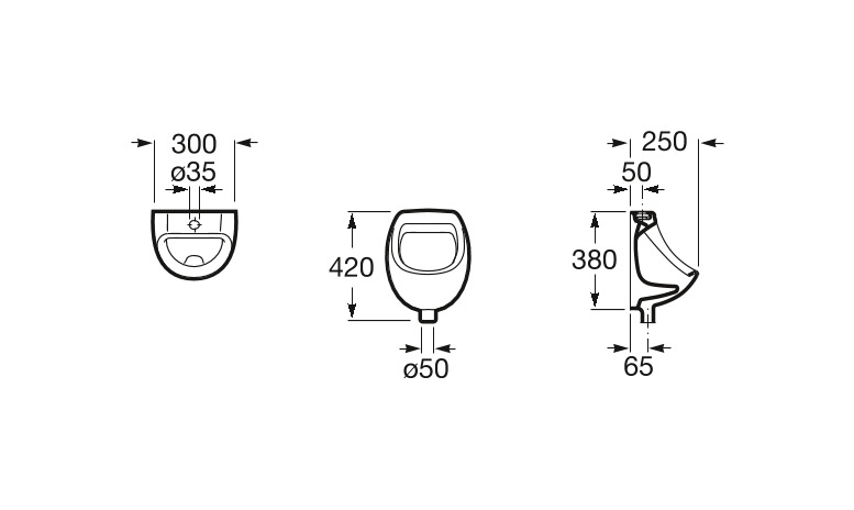 Caractéristiques de l'urinoir suspendu en porcelaine en alimentation supérieure Roca Mini (A353145000) :