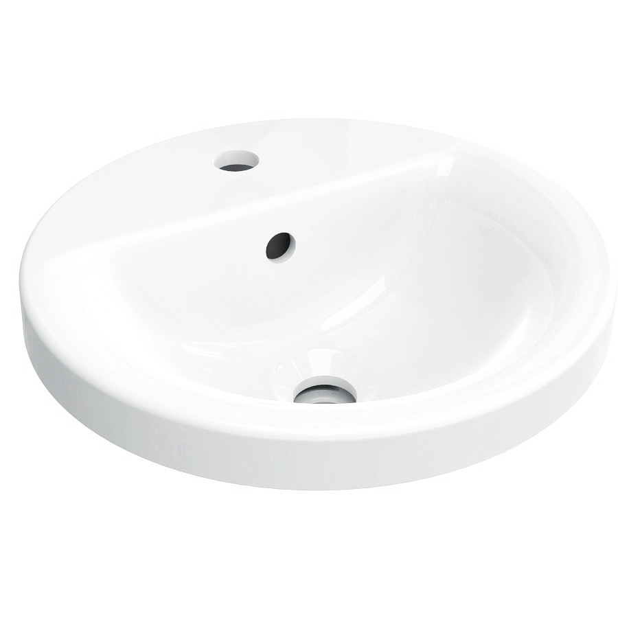 • Lavabo à encastrer de forme ronde équipé d'un trop plein et d'un trou de robinetterie.