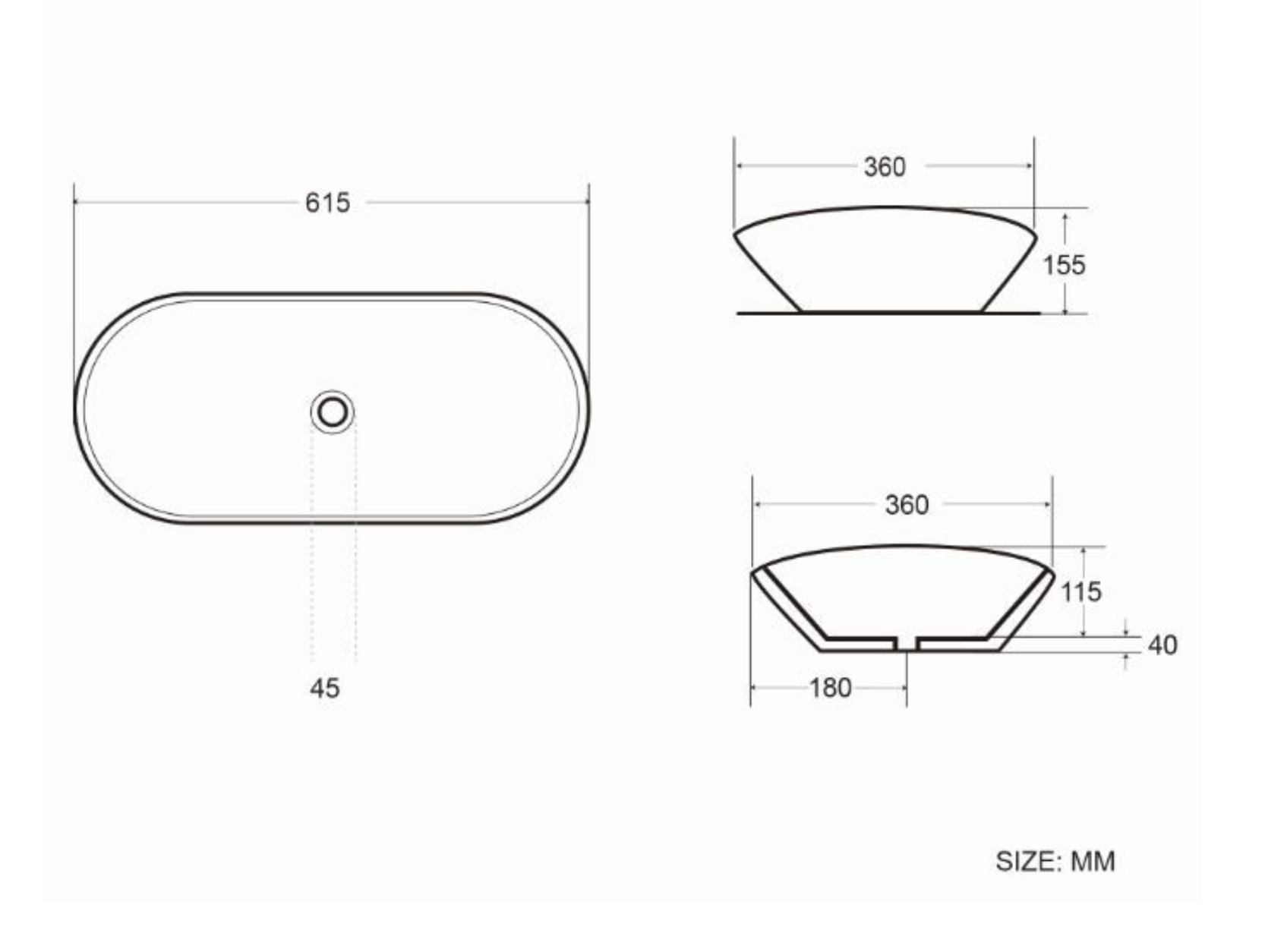 - Type de produit : vasque à poser sans trop-plein