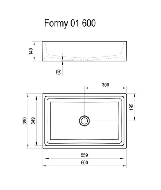Caractéristiques de la Vasque à poser 60 x 39 cm en matière composite à base de résine, Blanc, Ravak Formy 01 (XJL01260000) :