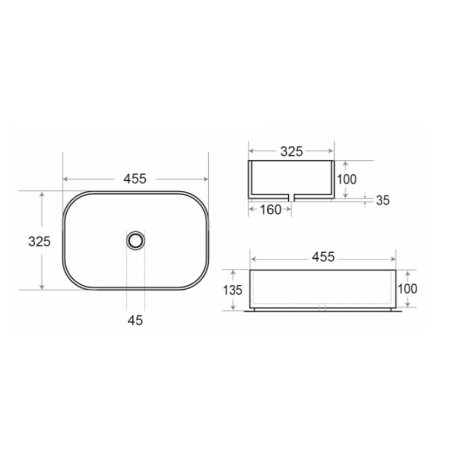 Caractéristiques du Set Vasque Infinitio à poser 45,5x32,5 cm + Bonde, Blanc mat (SATINF4532M-SET_BP) :