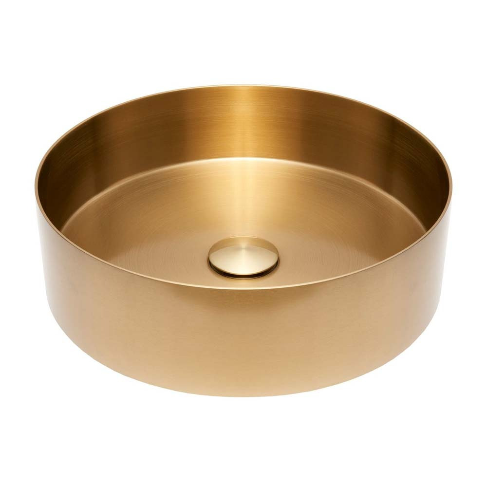 Caractéristiques de la vasque à poser en Acier inoxydable, 38 x 38 x 11 cm sans trop-plein + Bonde, or brossé (SATAUR3838BG) :