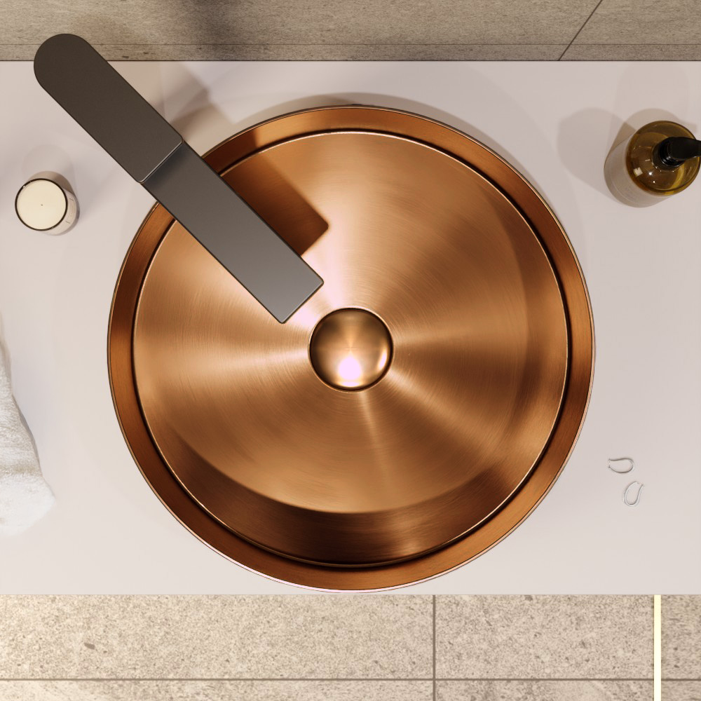Ceramia Timeless Vasque à poser en Acier inoxydable, 38 x 38 x 11 cm sans trop-plein + Bonde, cuivre brossé