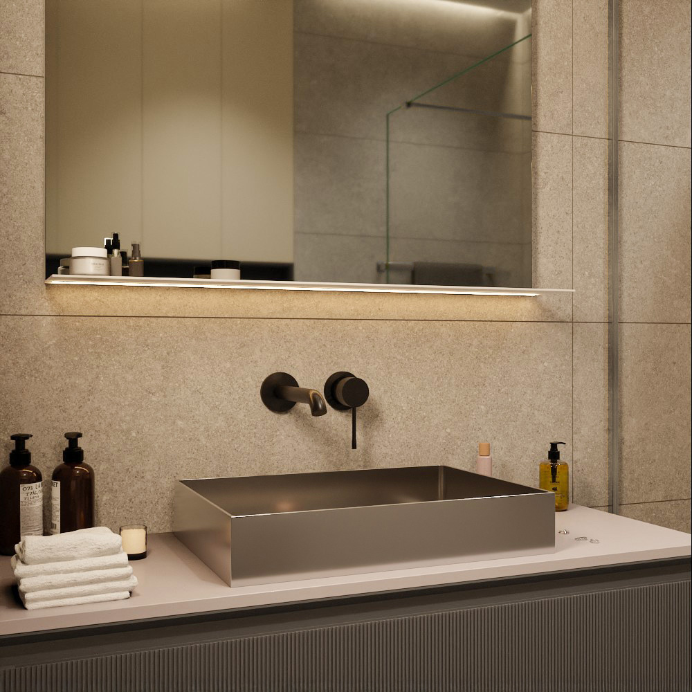 Ceramia Timeless Vasque à poser en Acier inoxydable 304, 55x38x11cm sans trop-plein + Bonde, Chrome brossé