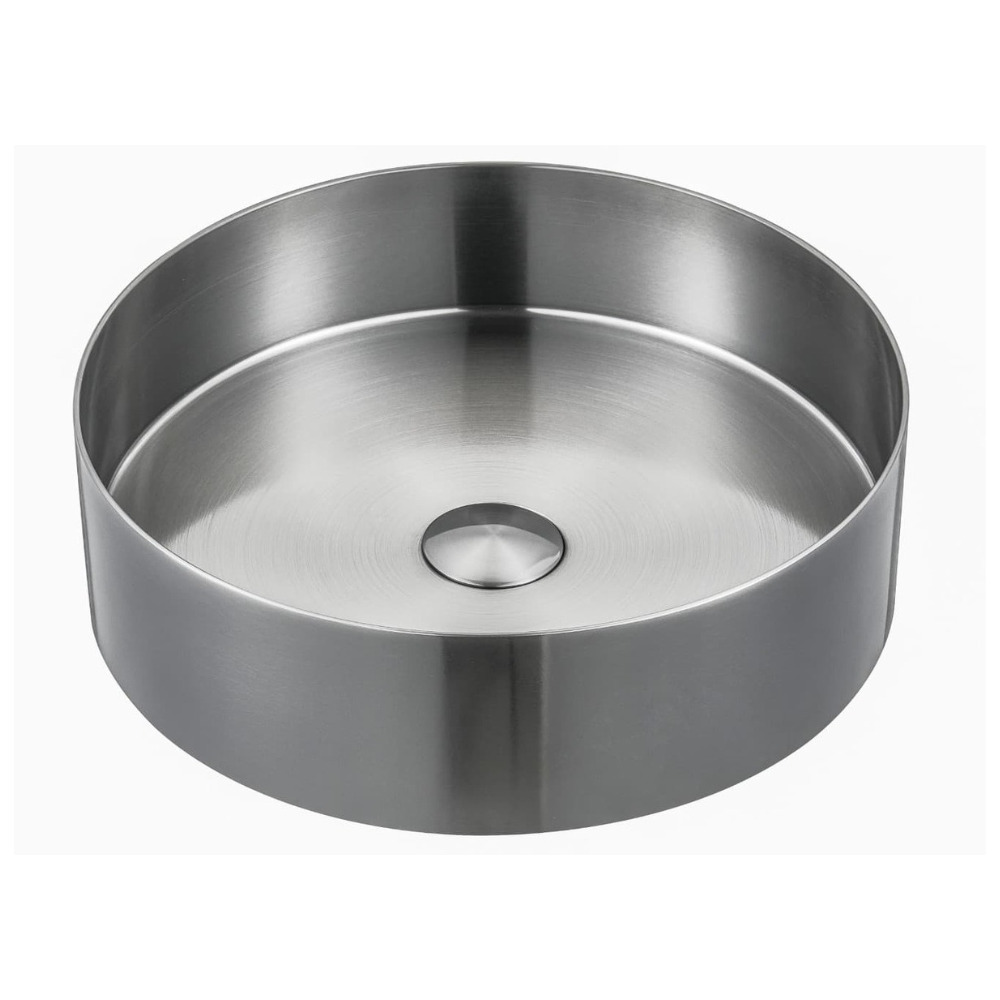 Vasque à poser ronde Aurum 38 x 38 x 11 cm en acier inoxydable brossé sans trop-plein avec bonde (SATAUR3838BS)
