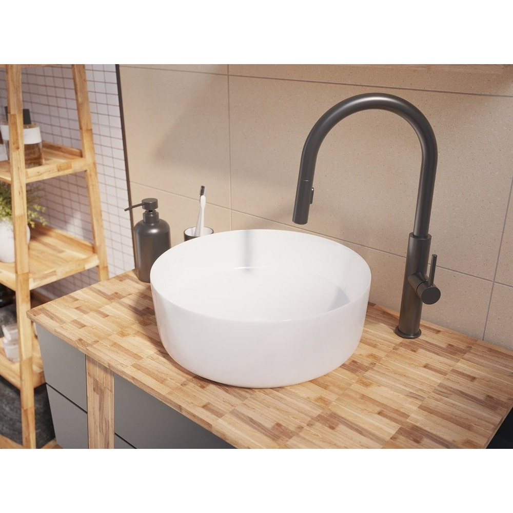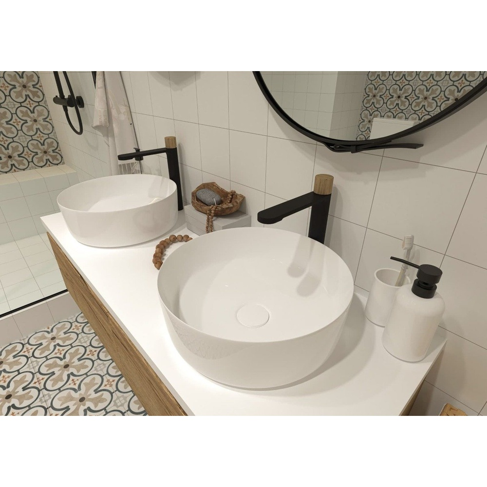 - Forme : ronde, à poser sur meuble ou plan de toilette