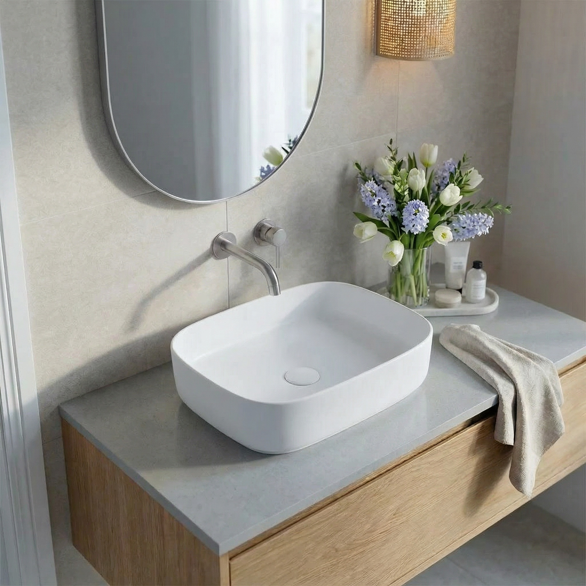 • Format 50 cm idéal pour salle de bain contemporaine