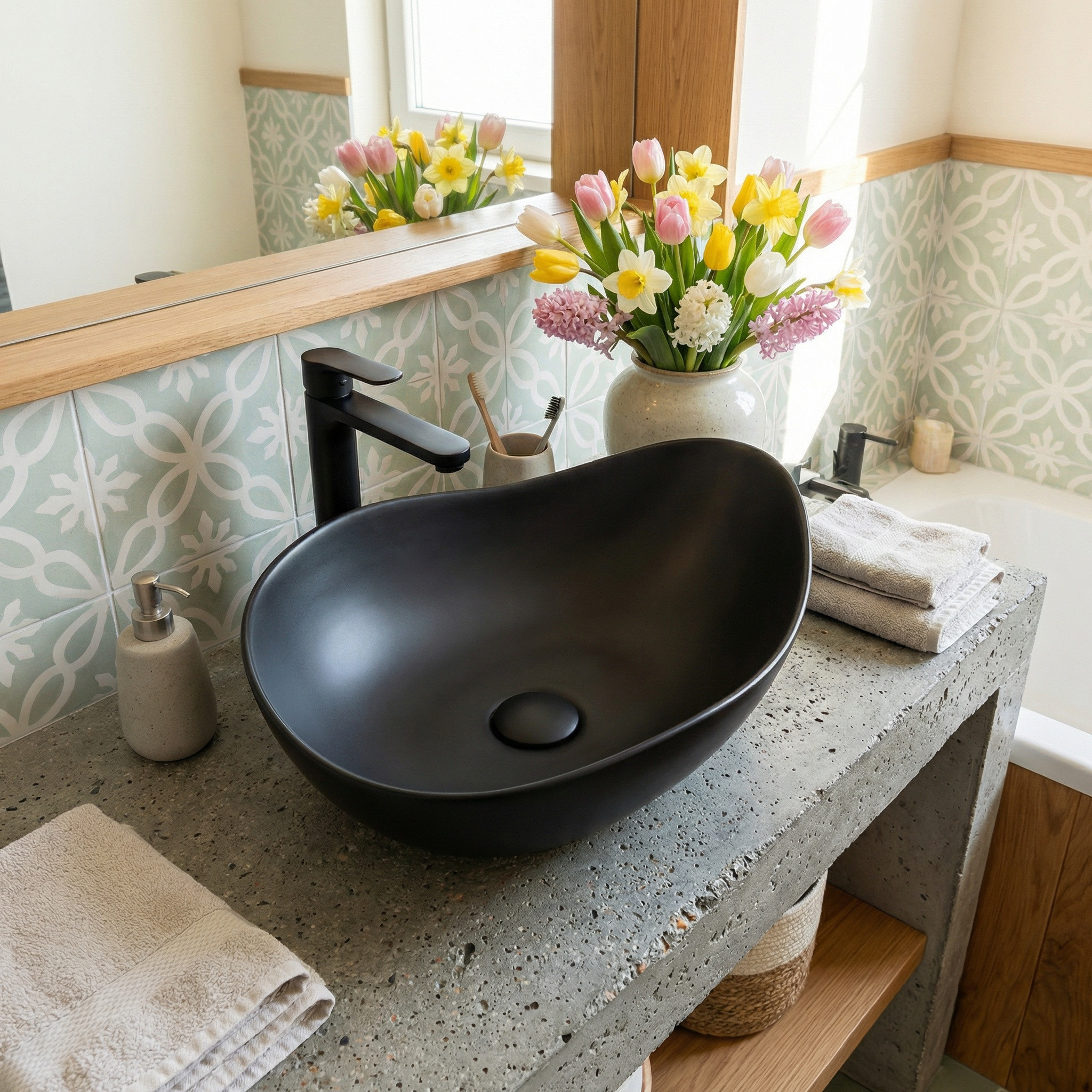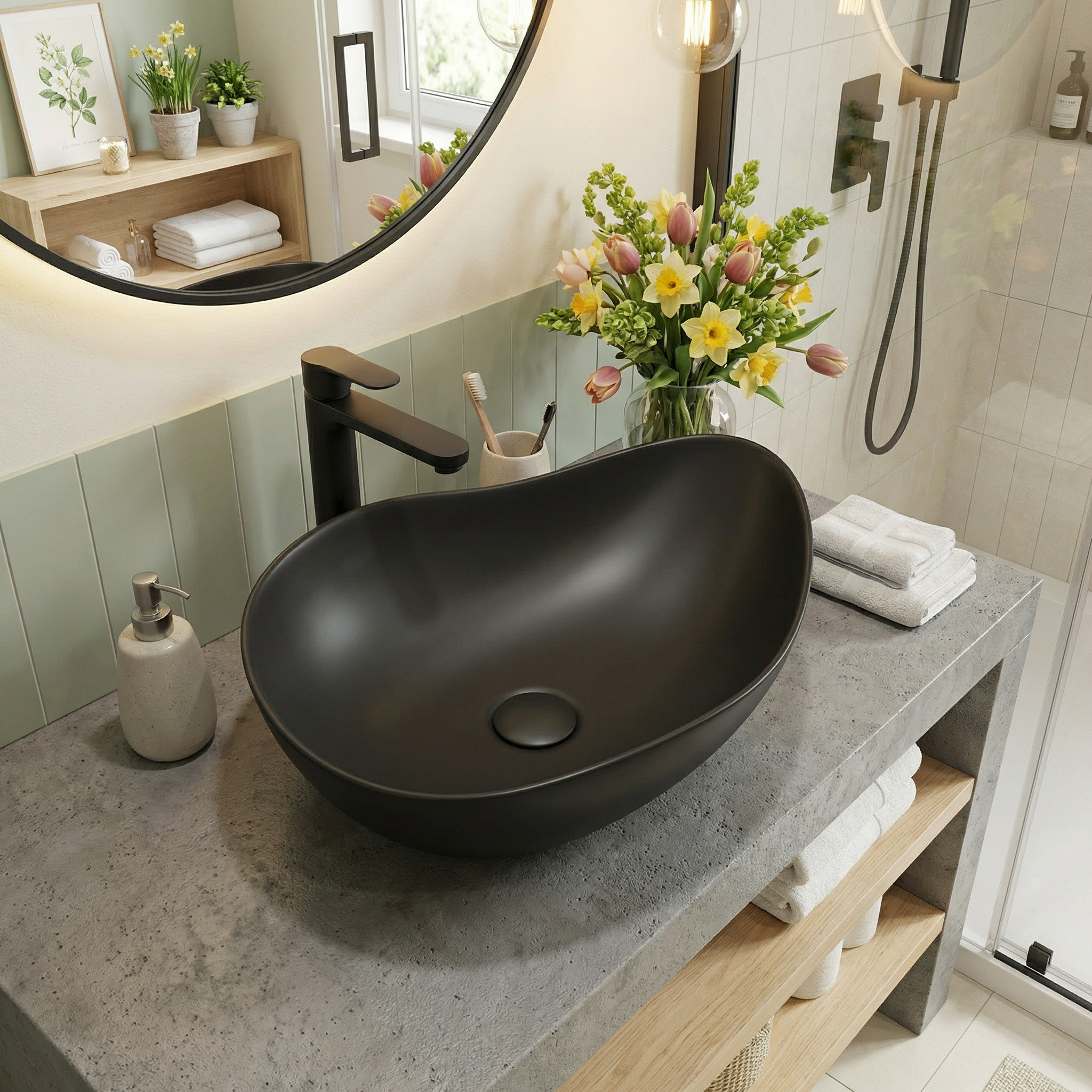 Vasque à poser design asymétrique 50,5 x 38 x 19 cm sans trop-plein noir mat PixL (CEPX5038BKM)