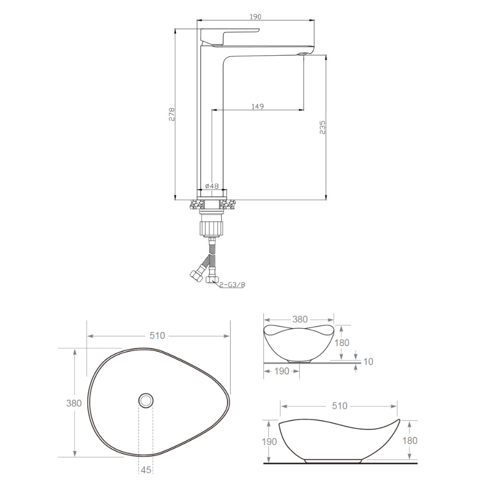 Set PixL 51 x 38 x 19 cm vasque à poser blanc brillant + mitigeur XL + bonde (CEPX50538SAT285C)