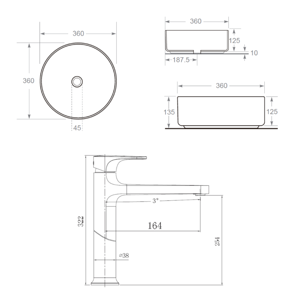 Caractéristiques du mitigeur lavabo XL avec levier, or brossé, Swiss Aqua Technologies DARK + Ceramia PixL 36x12,5 cm vasque à poser, sans trop-plein, blanc brillant (SAT285PBZCEPX3636) :