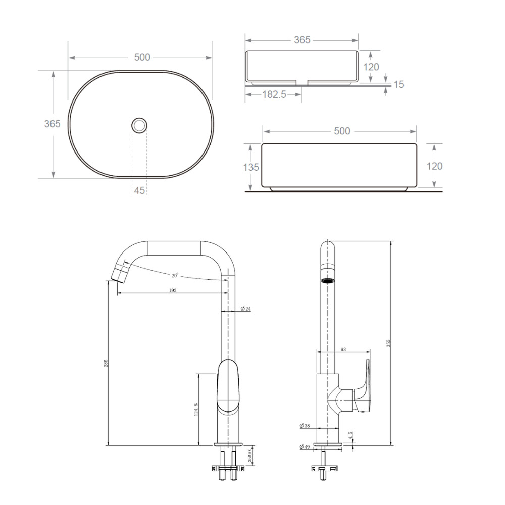 Caractéristiques du mitigeur lavabo bras pivotant, or, Swiss Aqua Technologies DARK + Ceramia PixL 50x36,5x12 cm vasque à poser, sans trop-plein, blanc (SAT280LBZCEPX5037) :