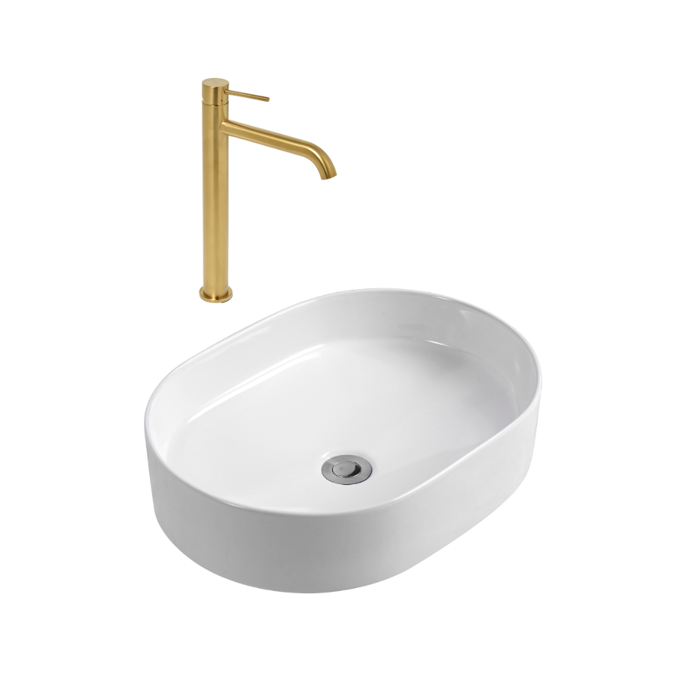 Ceramia Aurum mitigeur lavabo haut 30,8 cm inox, or + PixL 50x36,5x12 cm vasque à poser, sans trop-plein, blanc (SAT285BGCEPX5037)