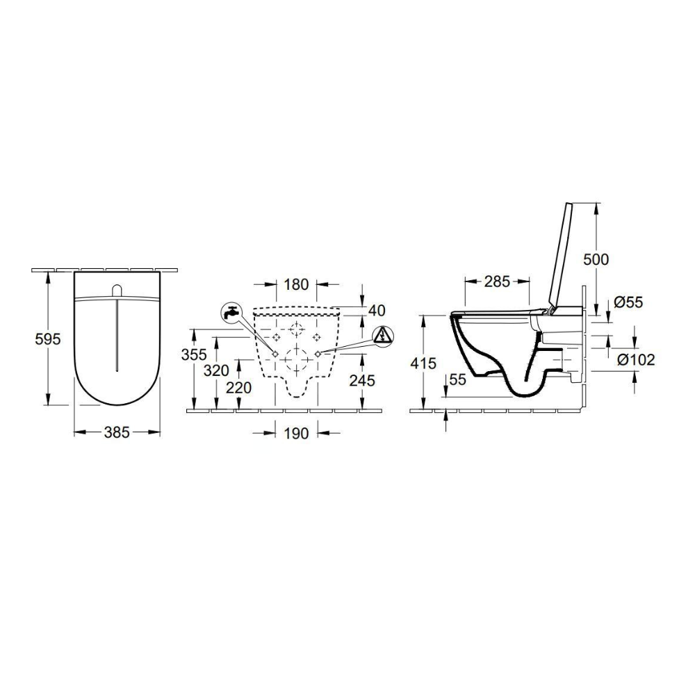 Caractéristiques du WC lavant suspendu sans bride CeramicPlus avec abattant SoftClose et DirectFlush, Villeroy & Boch ViClean-l 200, noir (V0E200R7) :
